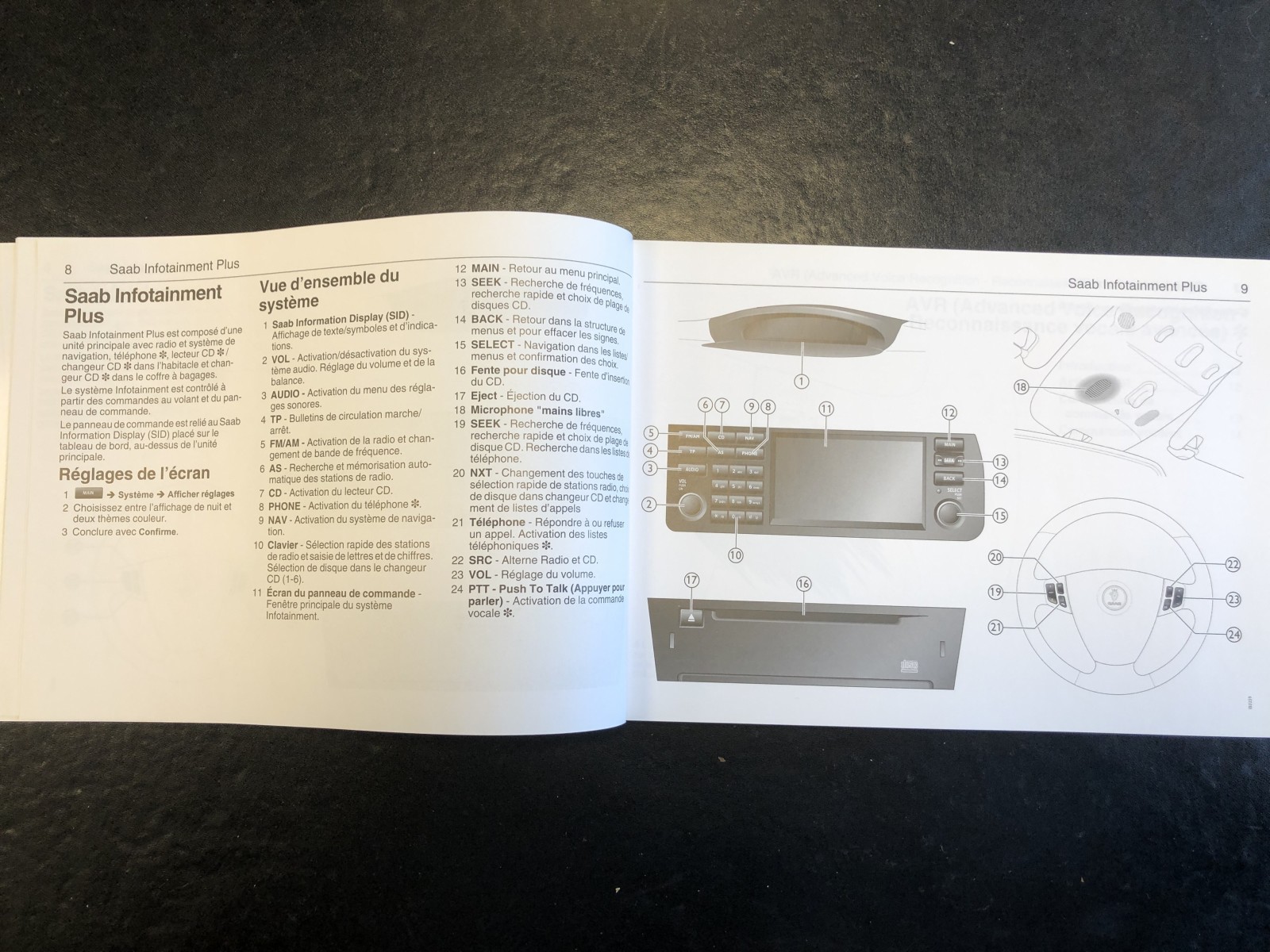 Manual saab original nuevo en francés. 136 páginas.